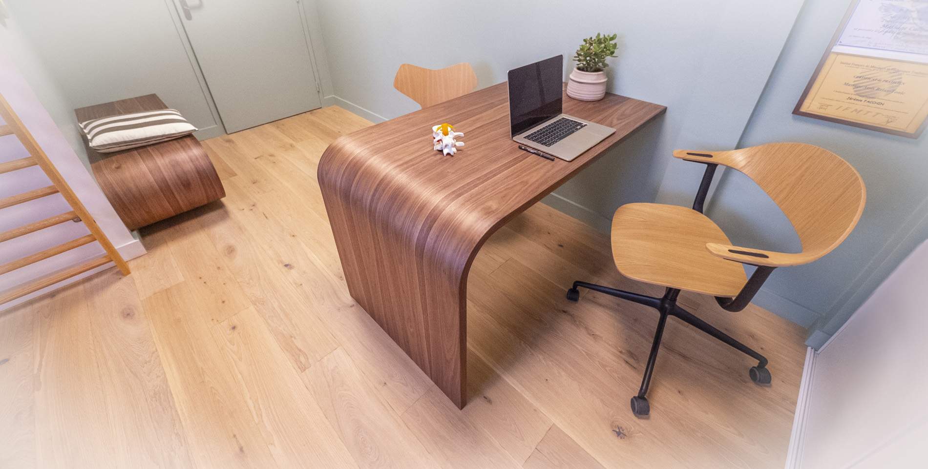 Nous concevons des solutions d'agencement qui optimisent chaque mètre carré de votre intérieur. Notre expertise nous permet de repenser la distribution des pièces et de créer des espaces à la fois fonctionnels et harmonieux. Nous réalisons des études complètes pour chaque projet, incluant des plans 2D et 3D, afin que vous puissiez vous projeter dans votre futur environnement. Qu'il s'agisse de l'agencement d'un salon, de la création d'une verrière en bois ou de l'optimisation d'un sous-escalier, nous apportons un soin particulier aux détails et aux finitions.